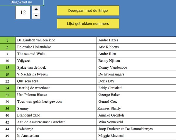 welke nummers getrokken zijn die voorkomen op de desbetreffende bingokaart.