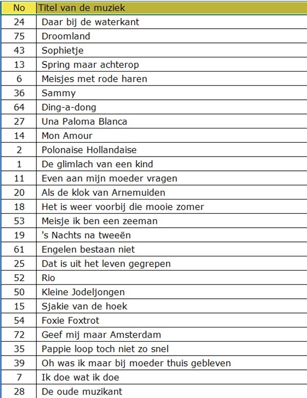 En een Excel bestand met 100 muziek bingo kaarten